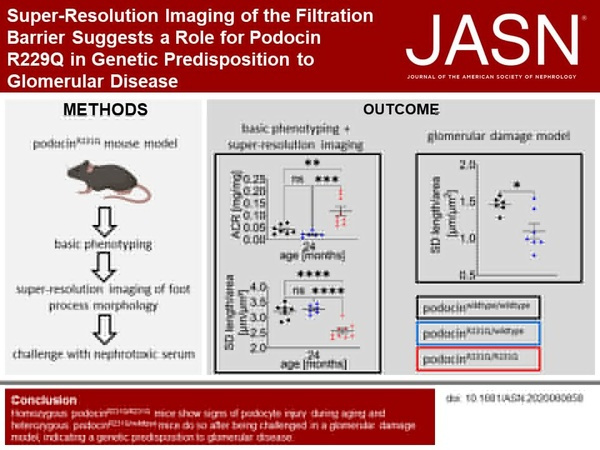 Mice carrying a common mutation in the gene encoding podicin show signs of podocyte injury as they age and after injection with a nephrotoxin—suggesting that the mutation confers a genetic predisposition to glomerular disease bit.ly/j202006085 @HoehneMartin